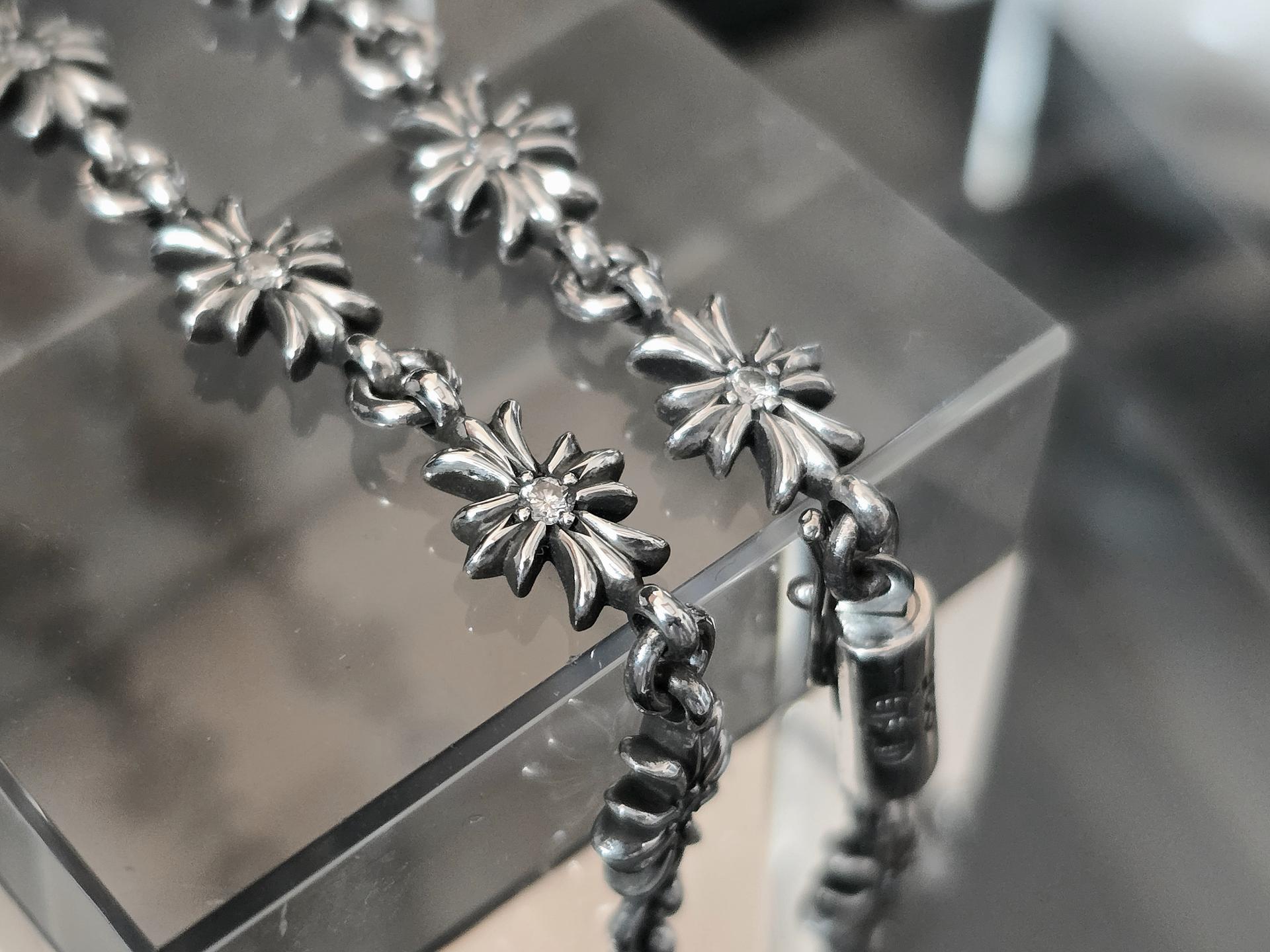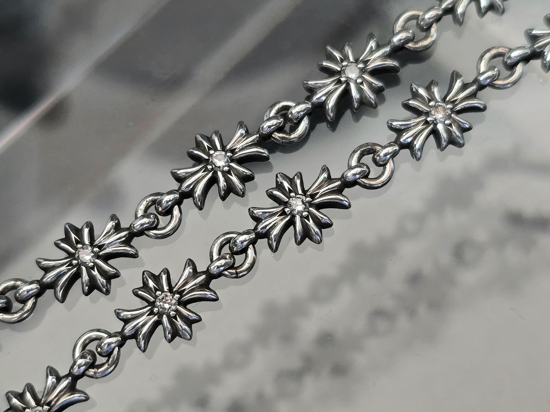 부담없는 크기 와 가벼운 착용감 으로 데일리 모델로 손색이 없으며 그럼에도 작은 플러스 링크 가 크롬하츠 의 존재감을 확실히 각인시켜주는 매력적인 녀석이죠.